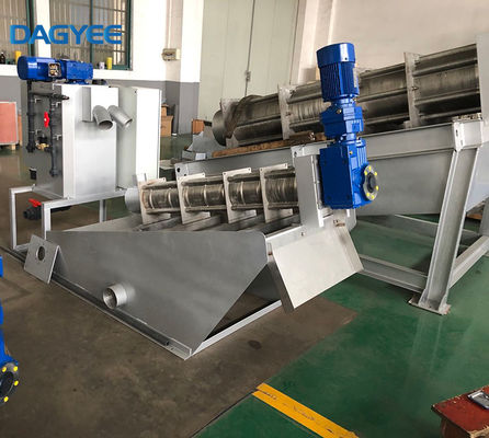Entwässerung: Der verdickte Schlamm bewegt sich vorwärts ununterbrochen von der Verdickungszone in Richtung zur Entwässerungszone. Mit der Neigung des Schraubenwellenfadens, der schmaler und schmaler erhält, erhöht der Druck in der Filterkammer höheres und höheres. Zusätzlich zum Druck, der durch die Gegendruckplatte erzeugt wird, wird der Schlamm groß gedrückt und trockenere Schlammkuchen produzieren;