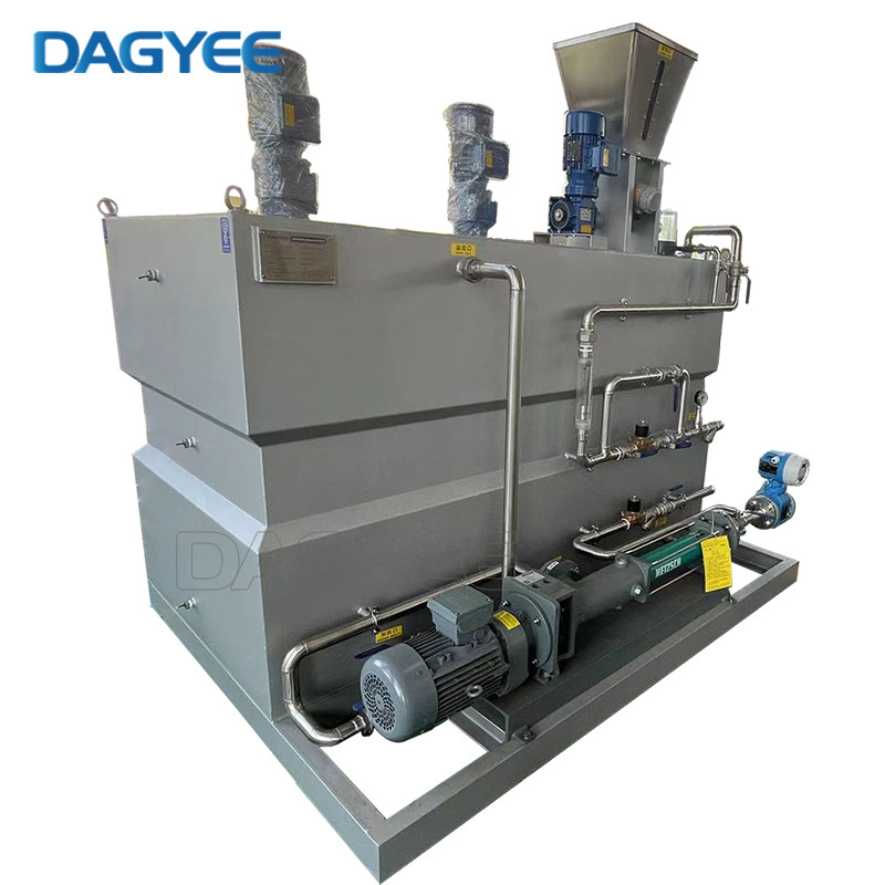 Auflösungsgerät des Polymers wird aus Vorwässerngerät, Behälter und 3 Sätzen Mischern verfasst. Das Vorwässerngerät ist, das Polymerpulver im Voraus einzusickern und zu mischen. Die 3 Behälter sind Vorgußmischbehälter, homogener Stillenbehälter und LösungsSammelbehälter, in dem es einen Mischer gibt, entsprechen, um der Homogenität zu garantieren.